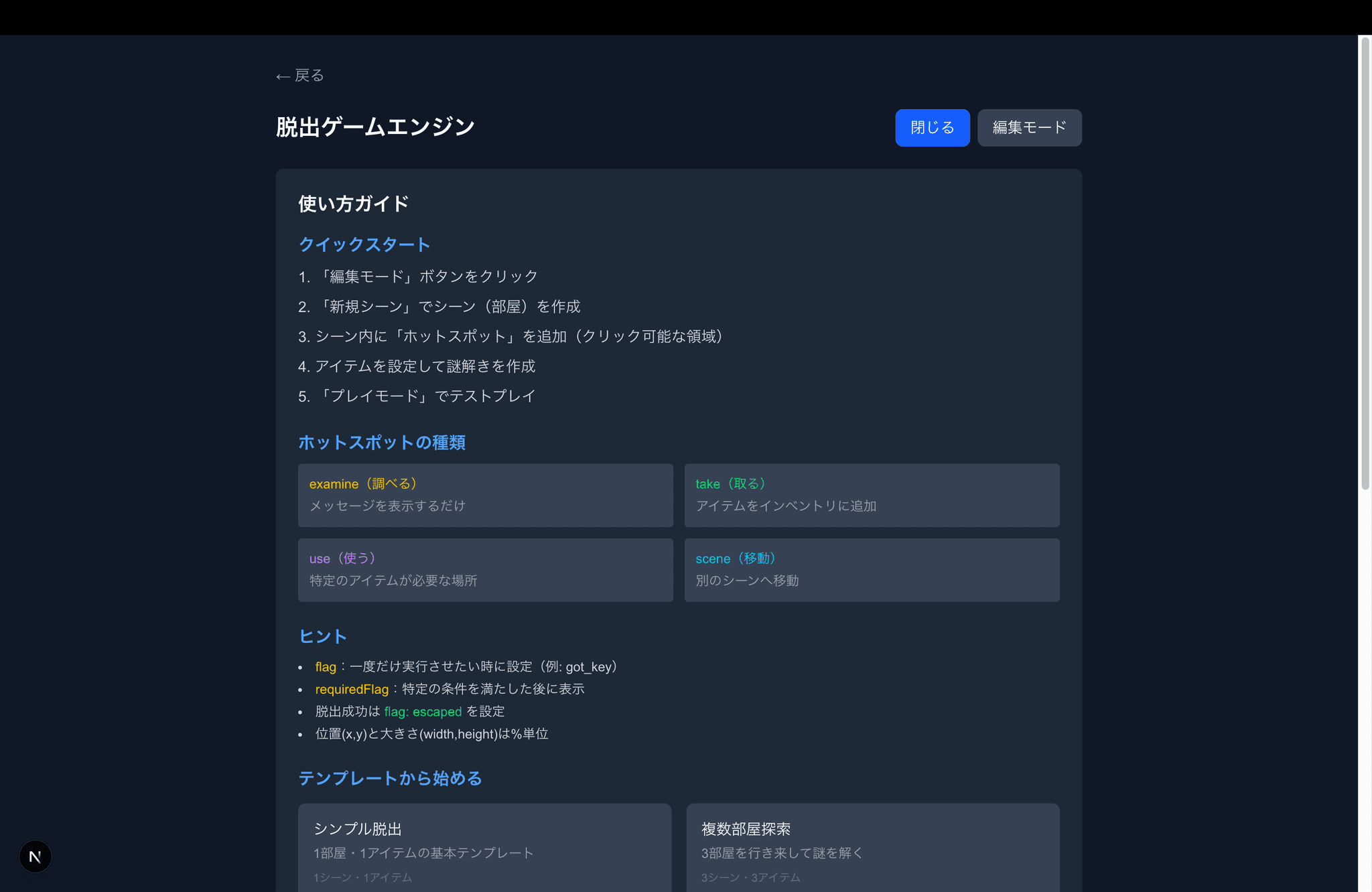 脱出ゲームエンジン