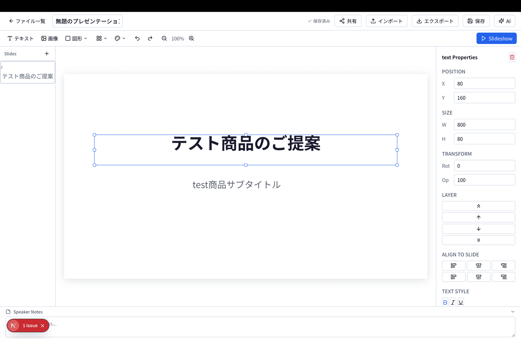 | **スライドエディタ** | Konvaベースのプレゼン作成。PPTXインポート対応 |