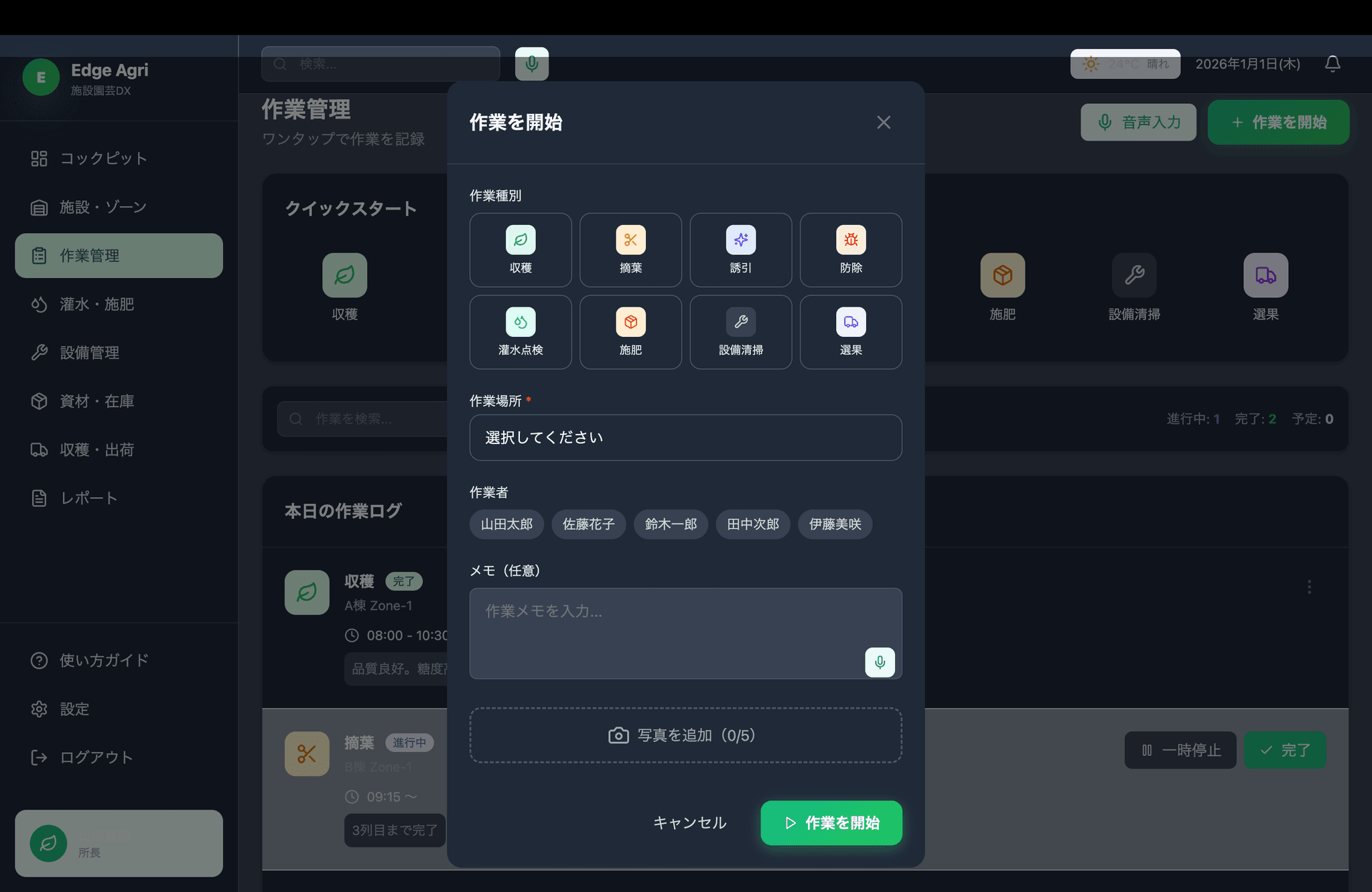 施設園芸特化の現場自動化DXスイート。作業記録・日報・GAP帳票を自動化し、人手不足でも回る標準化された栽培現場を実現します。