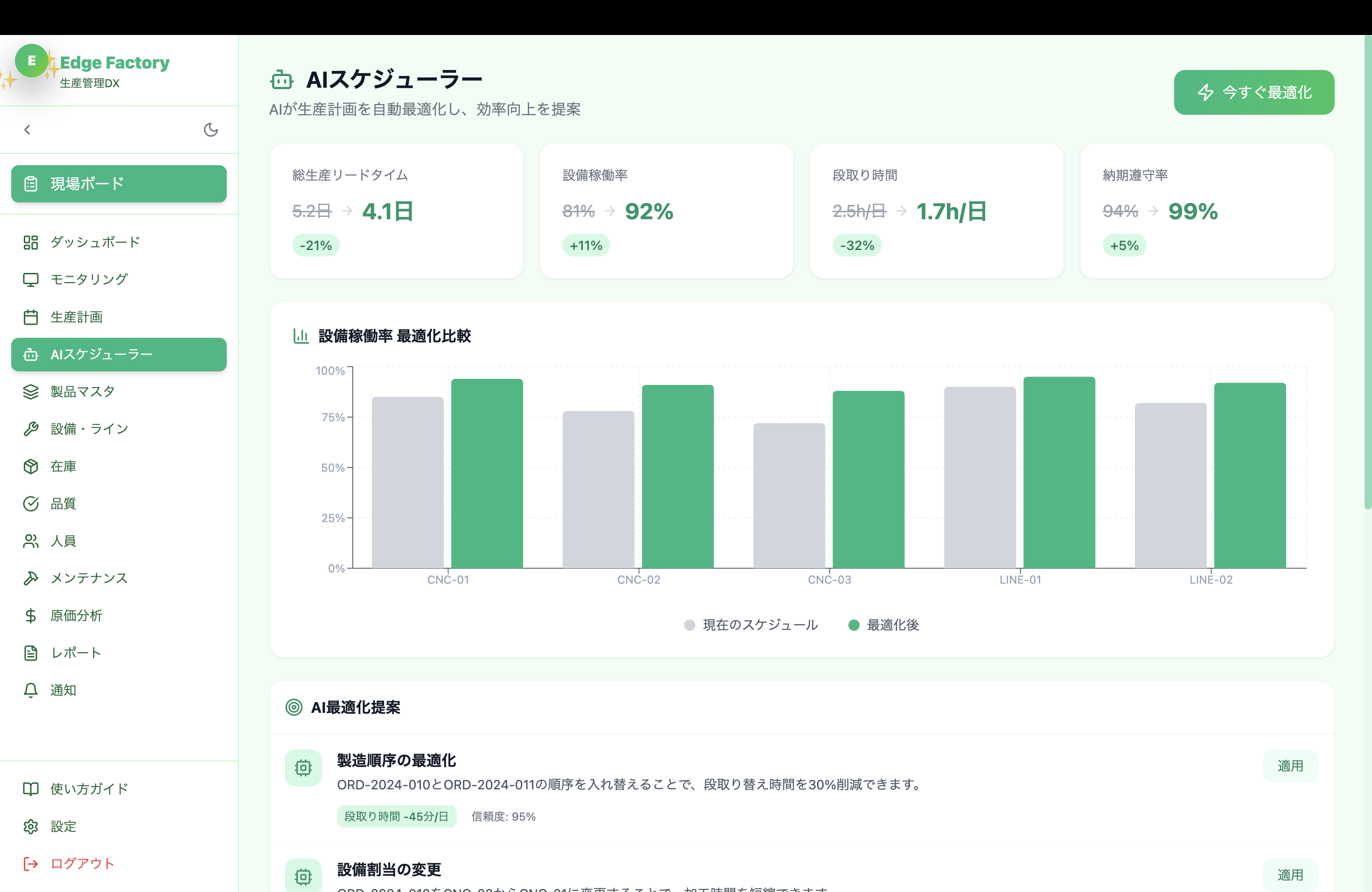 製造業向けDXスイート。生産管理、在庫管理、品質管理、設備保全をAIで最適化します。
