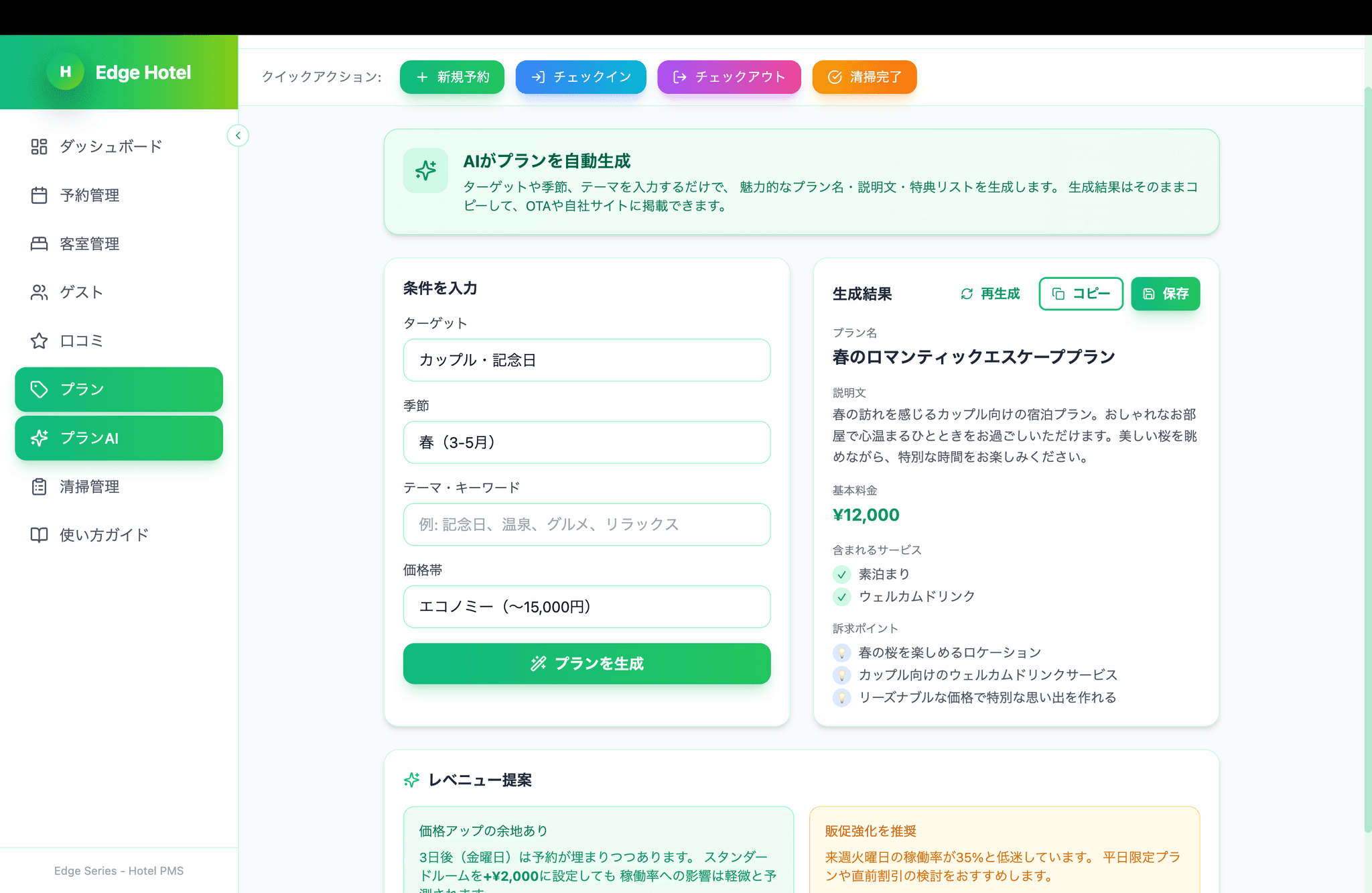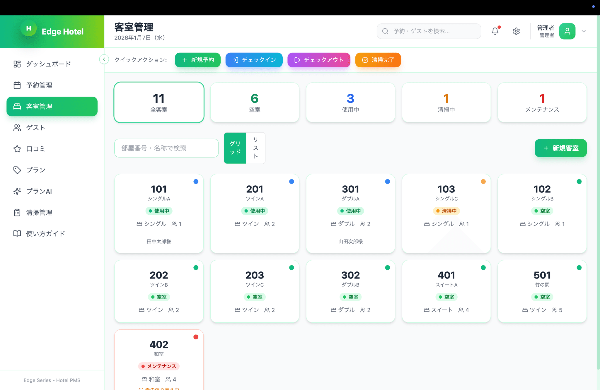 Edge Hotelは、ホテル・旅館・民泊のための統合管理プラットフォームです。