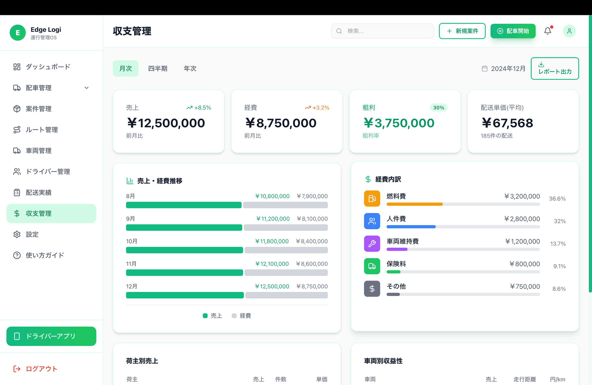 Edge Logiは、物流・運送業のための統合管理プラットフォームです。