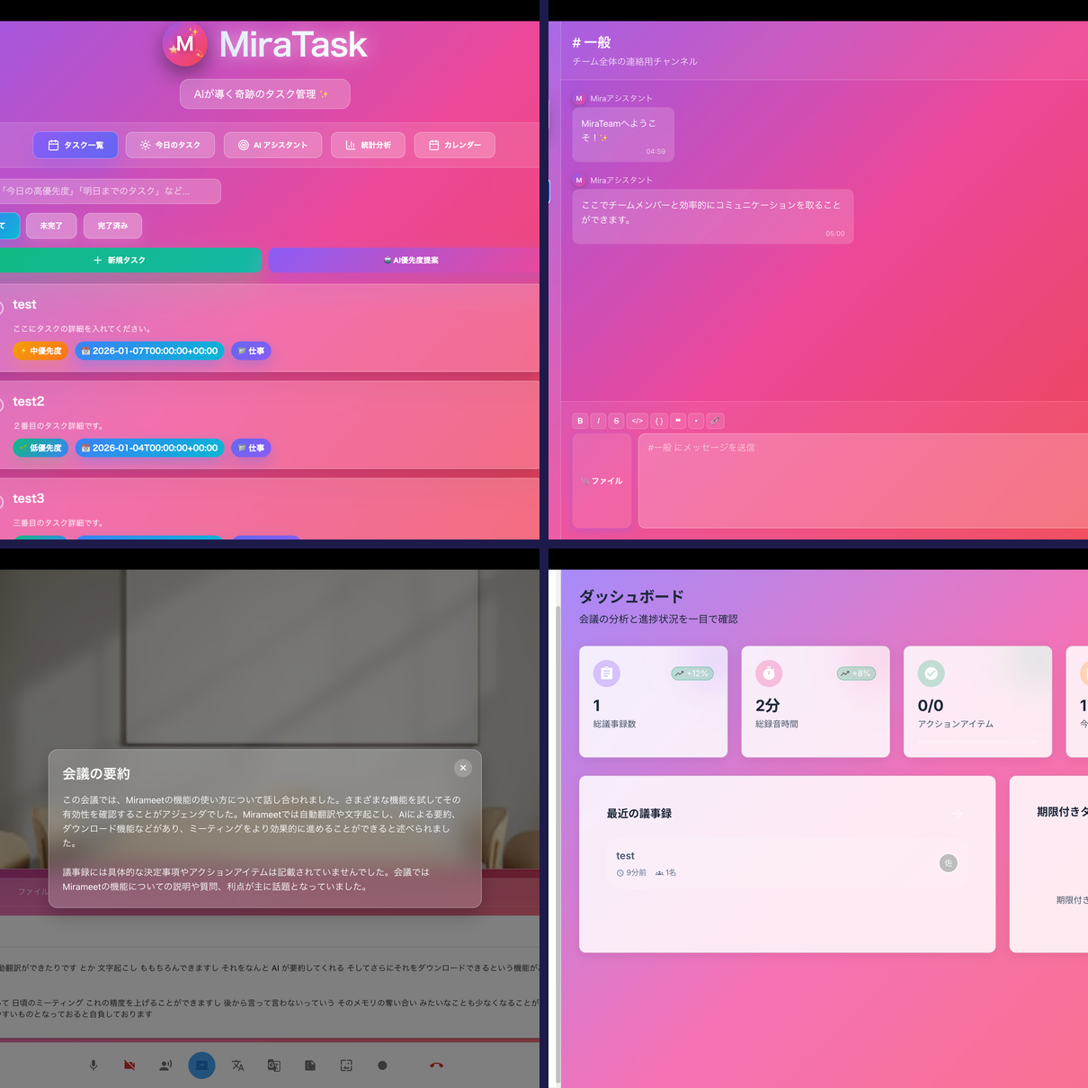 MiraTask・MiraTeam・MiraMeet・MiraTalkをまとめて導入。チームの生産性を一括で向上。