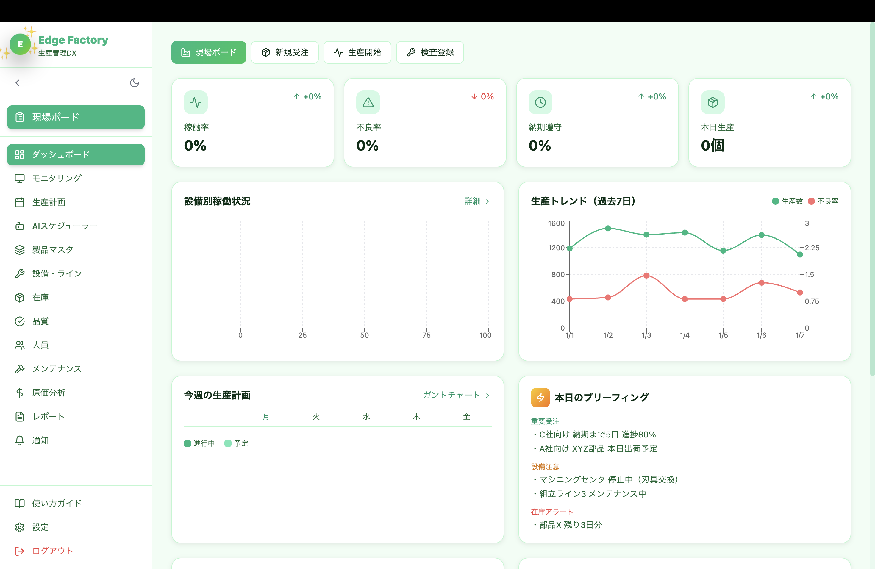 製造業向けDXスイート。生産管理、在庫管理、品質管理、設備保全をAIで最適化します。